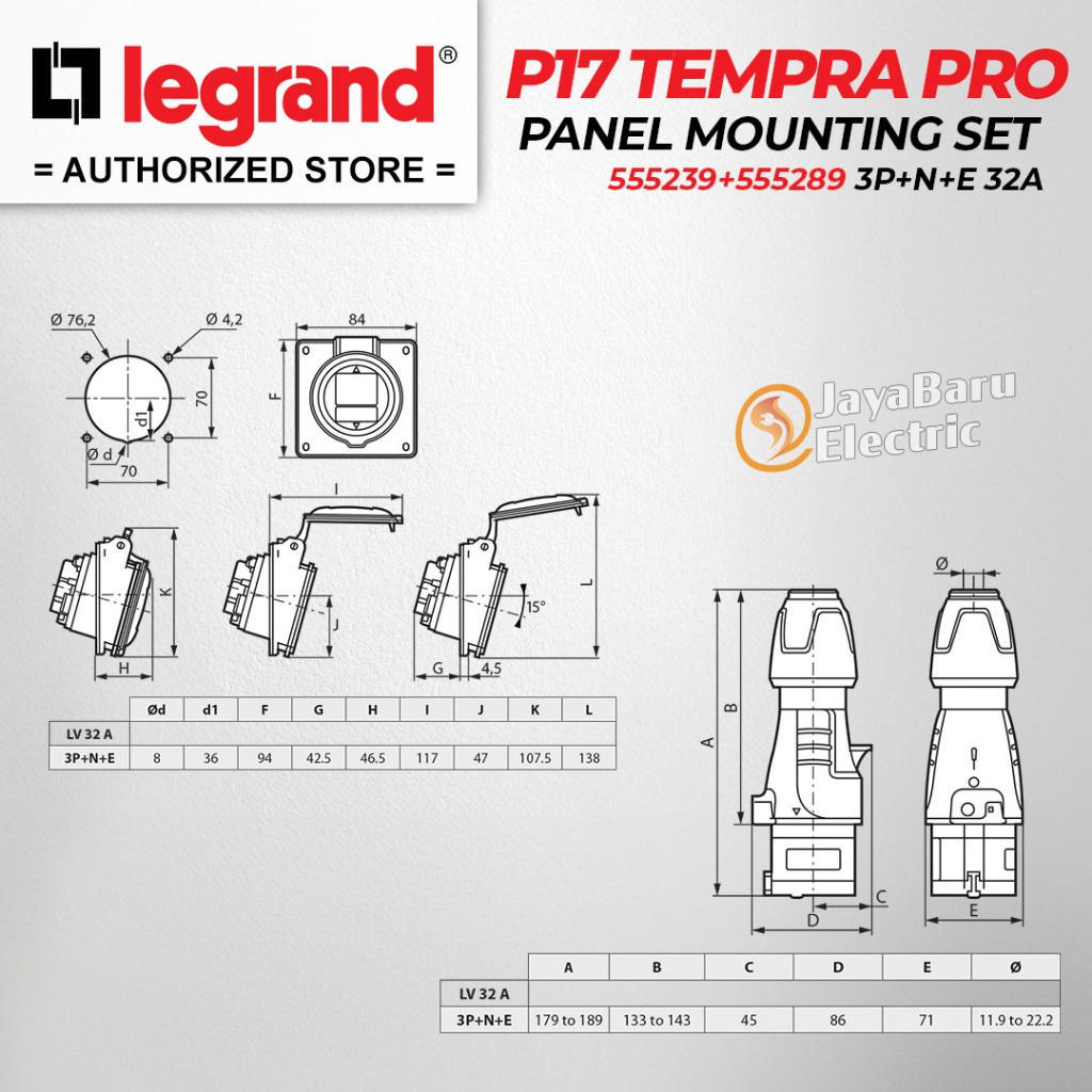 Legrand Paket 1 Set Plug Panel Mounting Socket 3P+N+E / 5 Pin 5Pin 32A IP44 P17 Tempra Pro 555289 555239