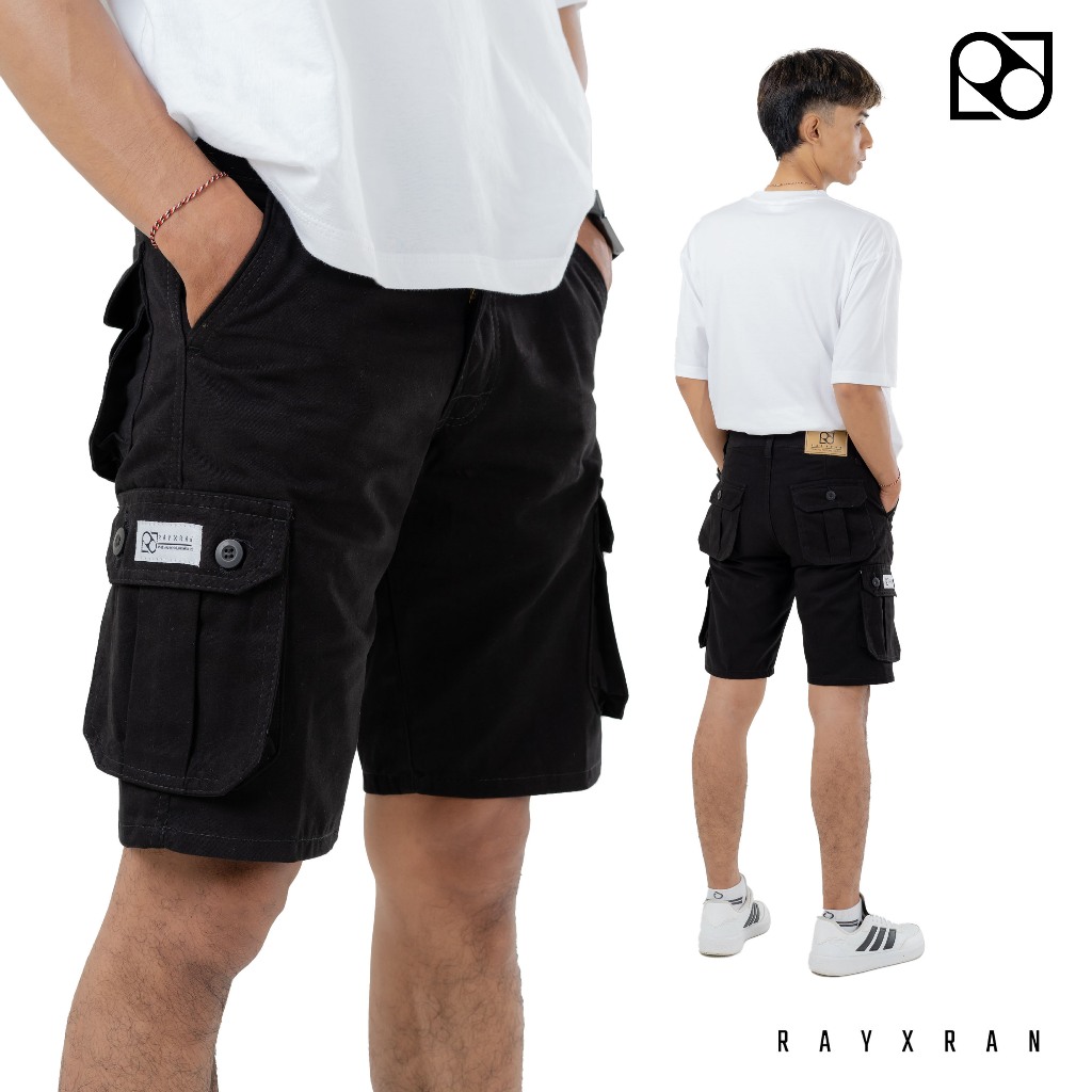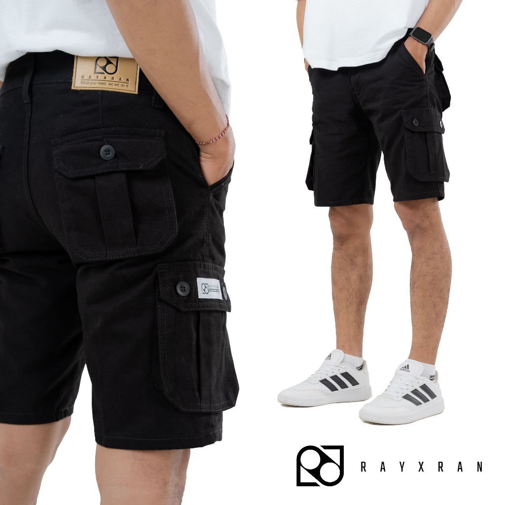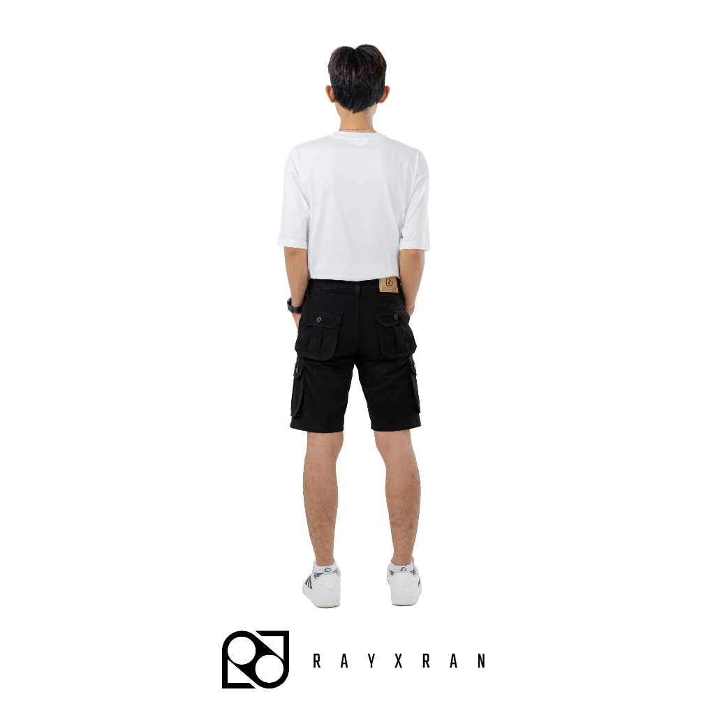 P&I SHOP RAYXRAN Celana Cargo Pendek Pria Basic Full Black