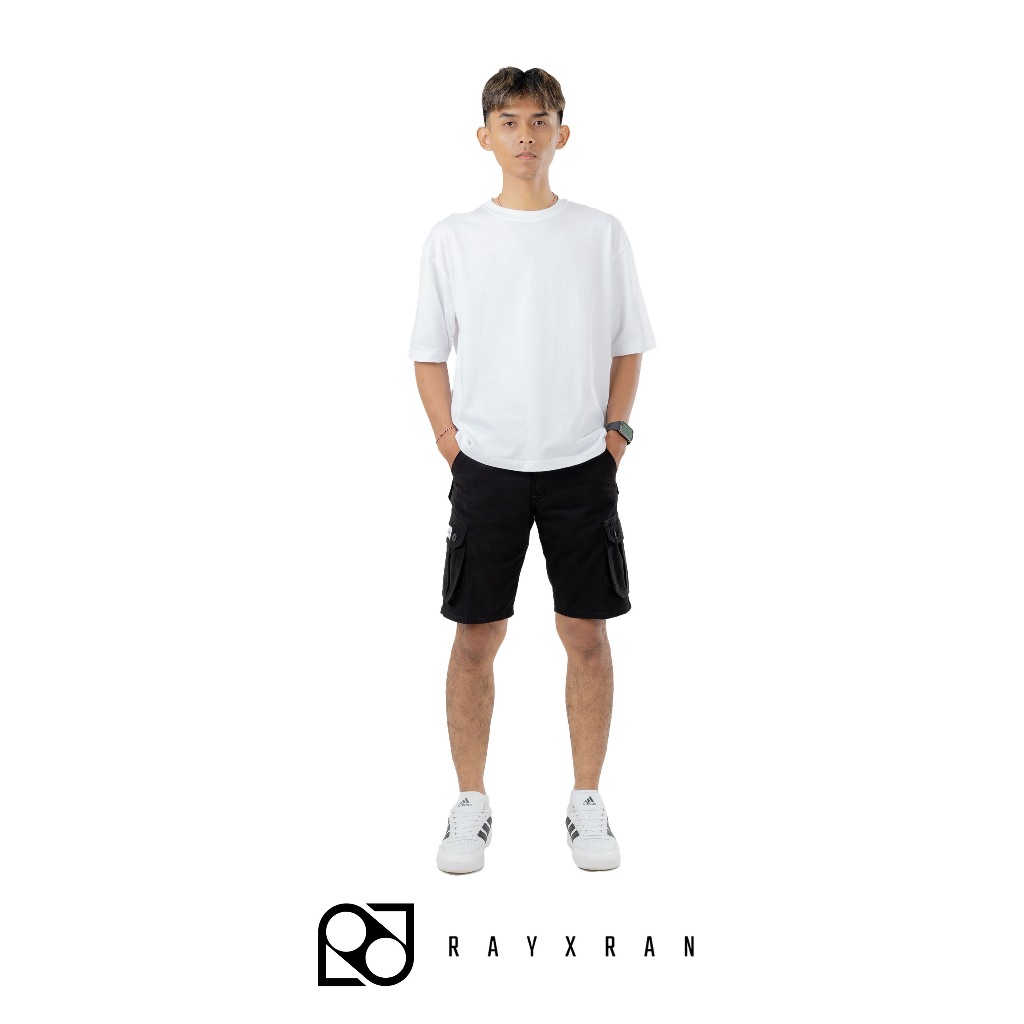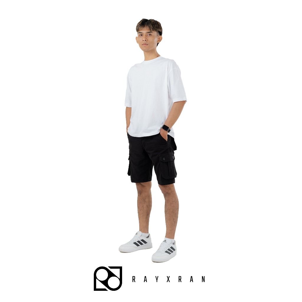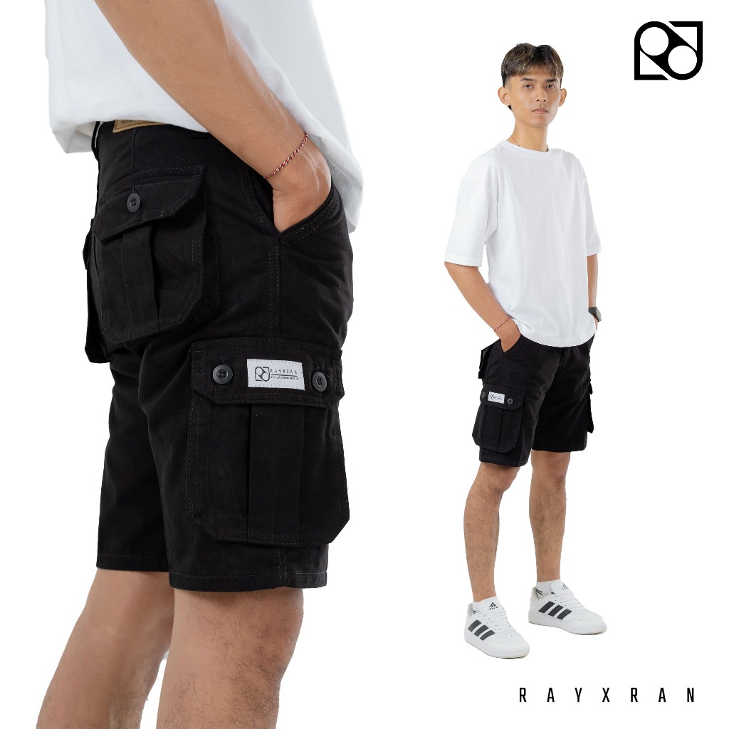P&I SHOP RAYXRAN Celana Cargo Pendek Pria Basic Full Black