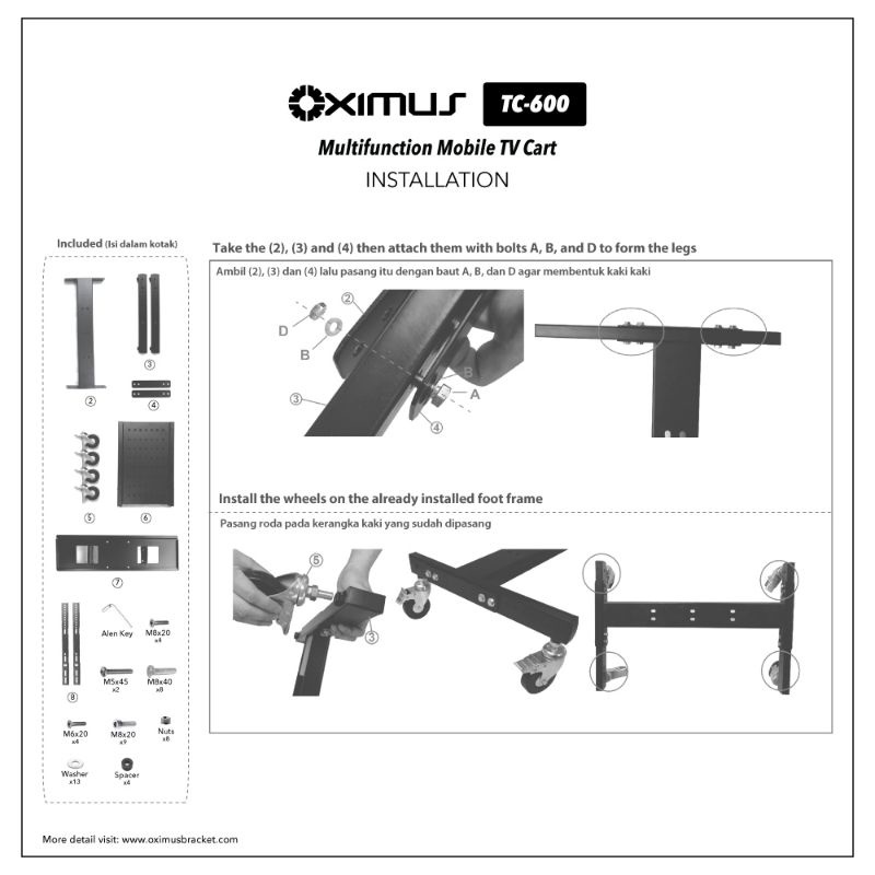 Bracket TV LED Monitor Stand Roda Panggung 32" - 65" TC600