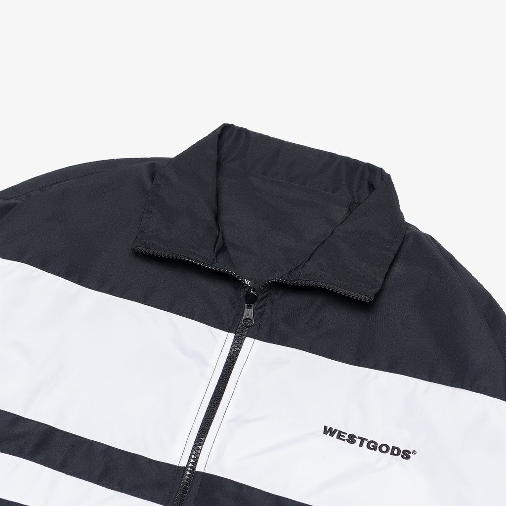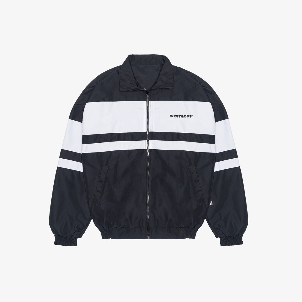 P&I SHOP WESTGODS - Jaket Tracksuit Running Tracktop Olahraga Pria Wanita Bahan Parasut Warna Hitam List Putih