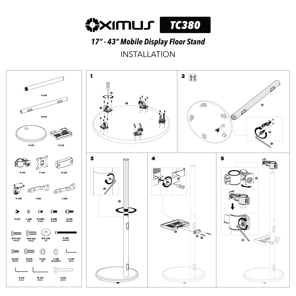 Bracket TV Standing Roda Portable Minimalis 17" - 43" Oximus TC380