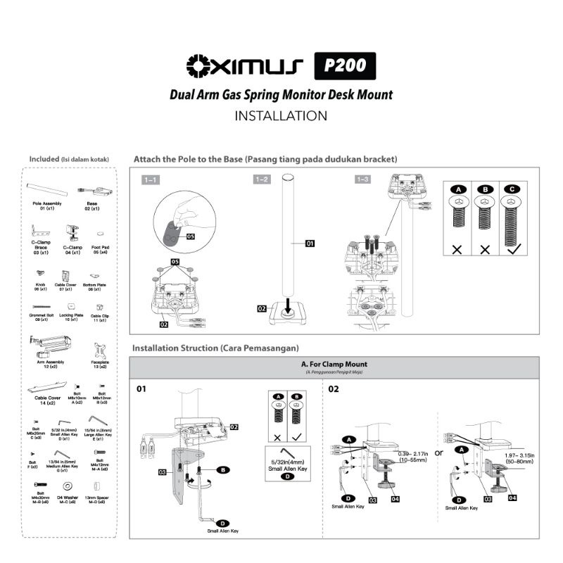 BRACKET DUAL MONITOR LED LCD GAS SPRING OXIMUS P200 P200E SWIVEL ROTATE usb 3.0 x2