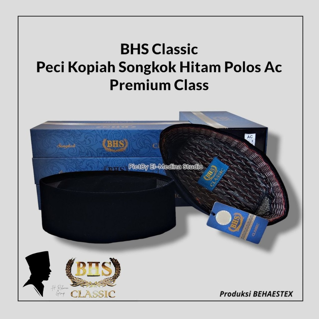 Peci BHS Original Songkok Hitam Polos Ac Kopiah Classic Tinggi 9cm&10cm
