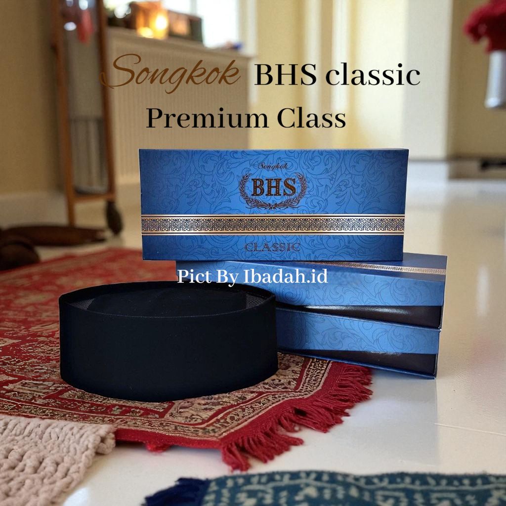 IBADAH.ID Peci BHS Original Songkok Hitam Polos Ac Kopiah Classic Tinggi 9cm