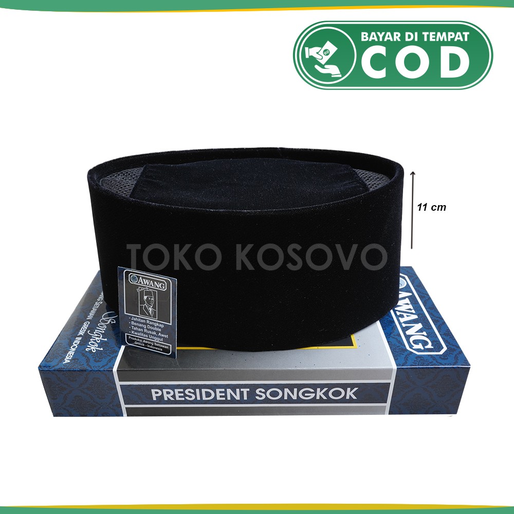 Songkok Hitam AWANG AC & Full AC Tinggi 7 8 9 10 11 Cm Peci Sholat Bludru Ukuran Anak Laki Pria Dewasa Santri Pesantren