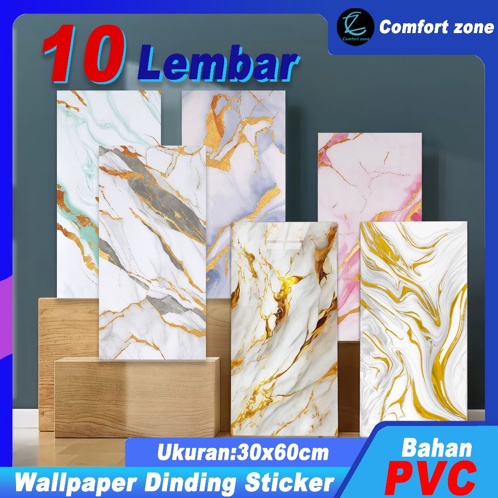 Paket 10 Lembar Wallpaper Dinding Vinyl Marmer 30x60cm / Stiker Keramik Marble Granit