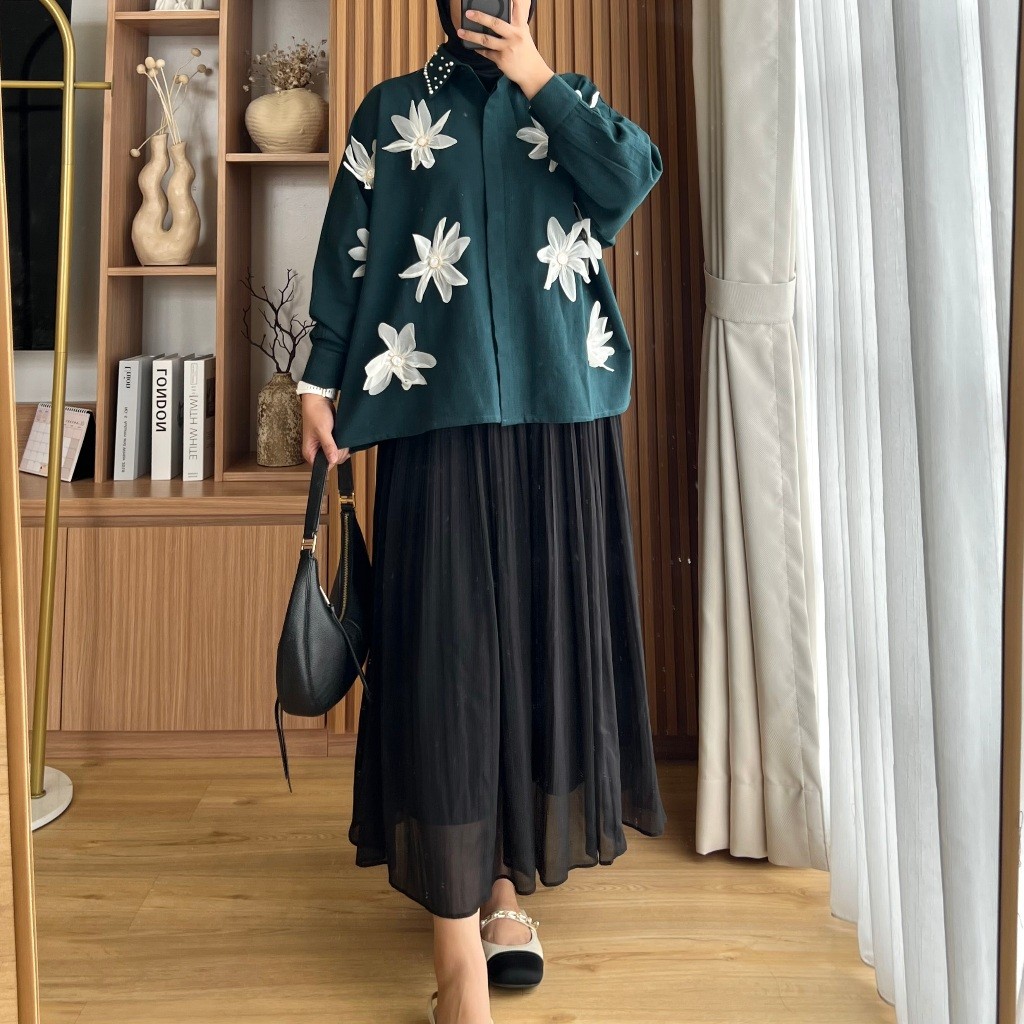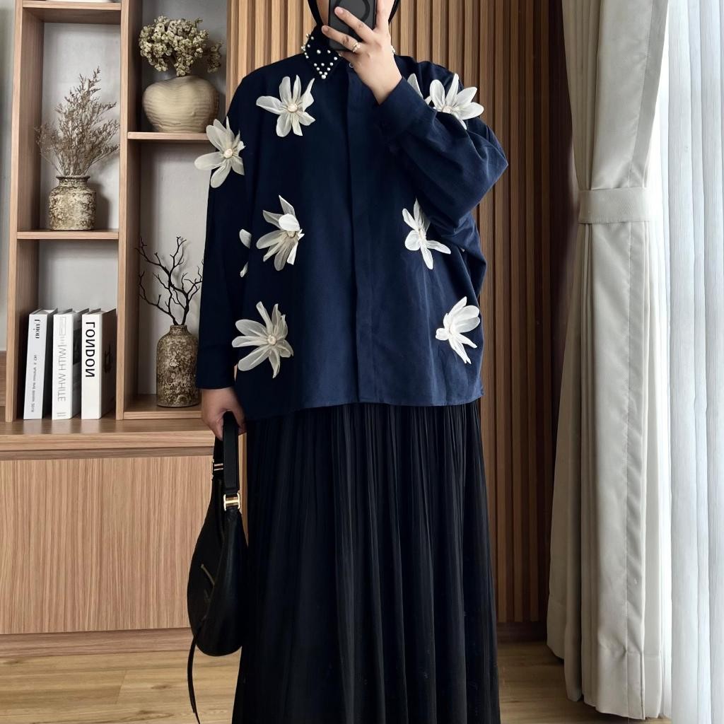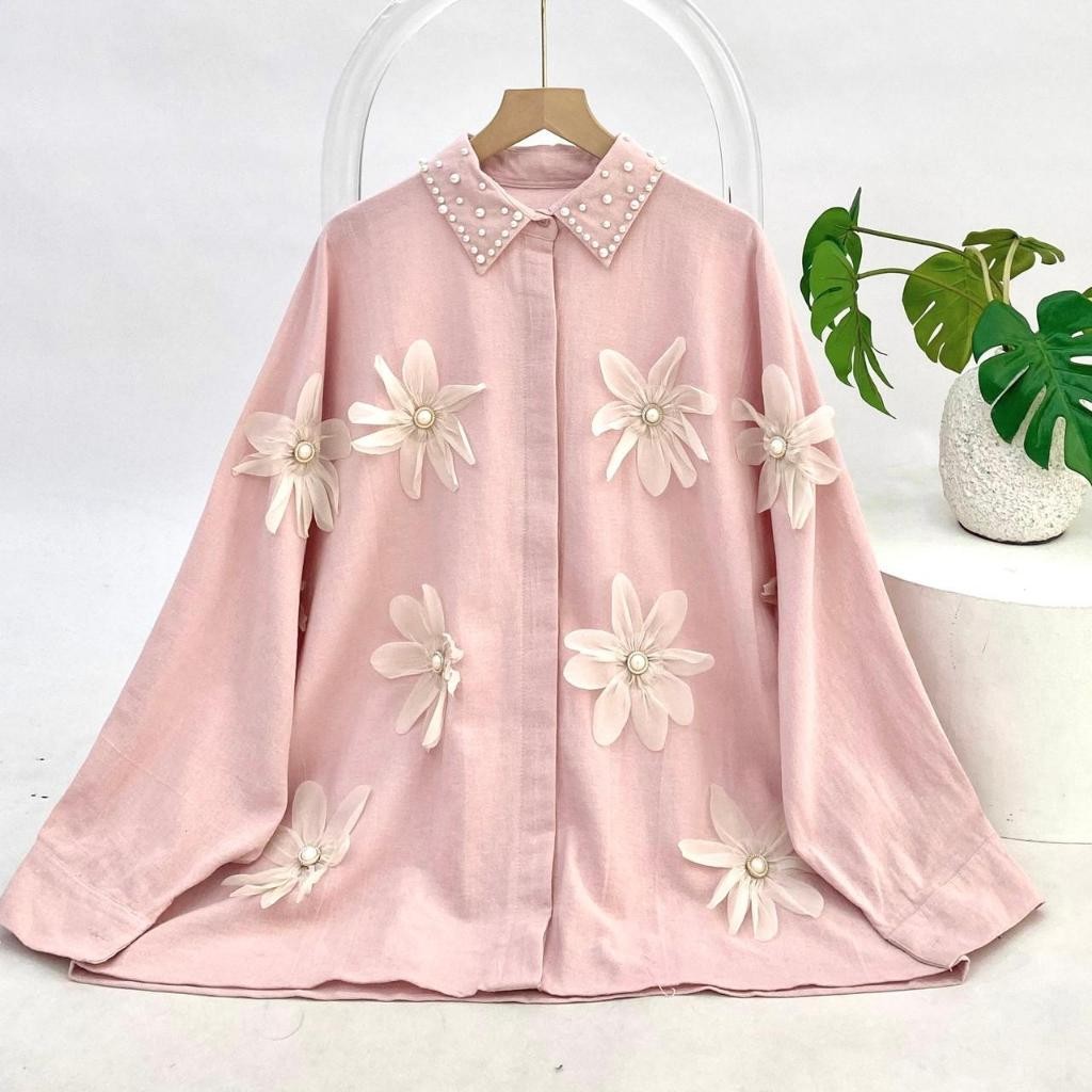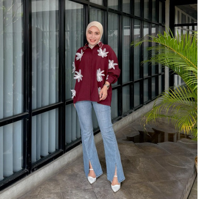 Diana Flowery Blouse Linen Bunga-Bunga is