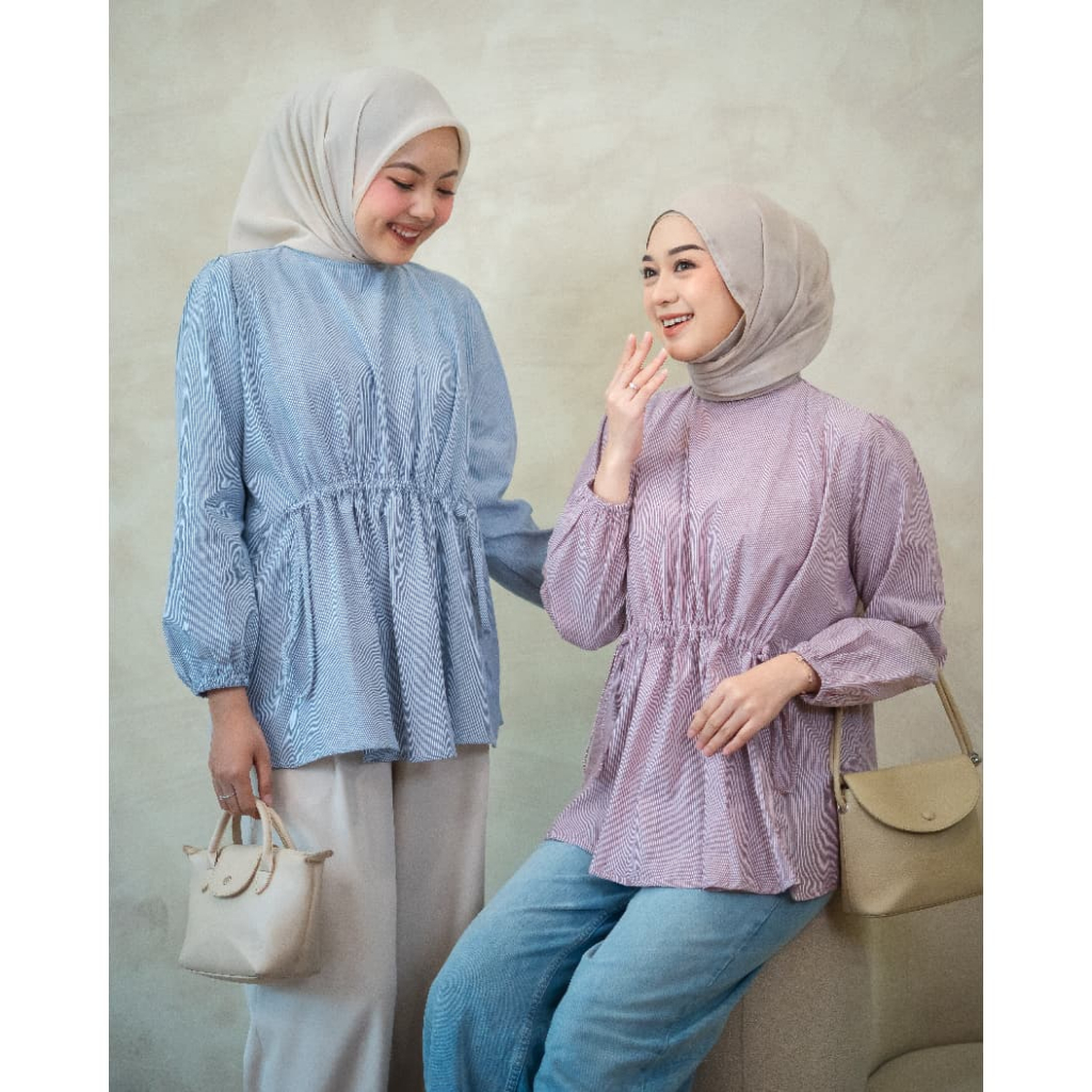 Kamila - SERUNI BLOUSE || Blouse Stripe Wanita Aksen Kerut Depan