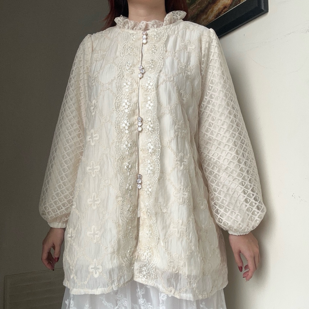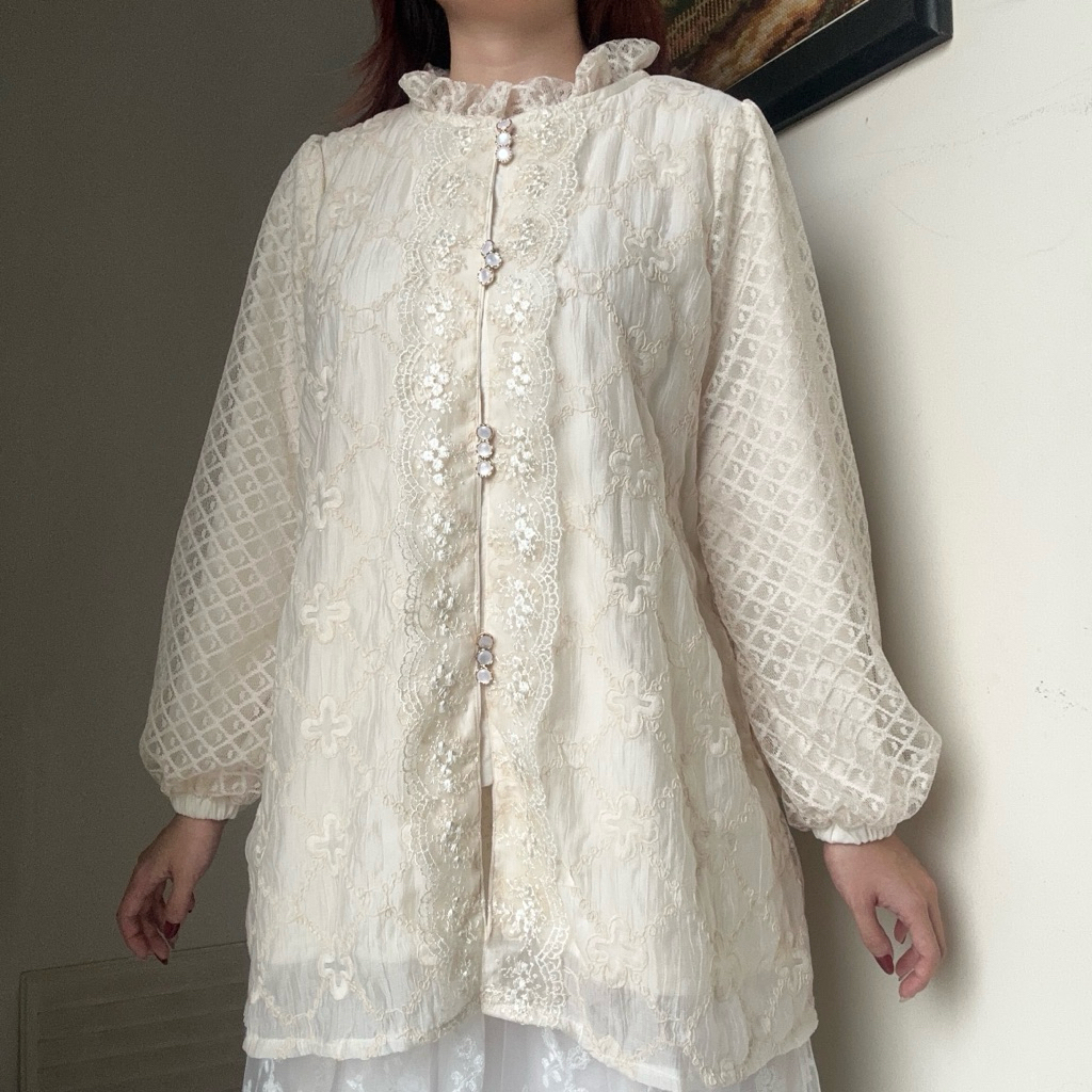 Azena BKK Top Atasan Blouse Wanita Viral Kemeja Cantik Kerja Korean Style Renda Tensel Brokat By Biel The Label