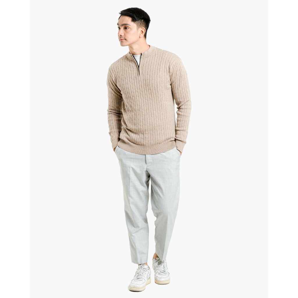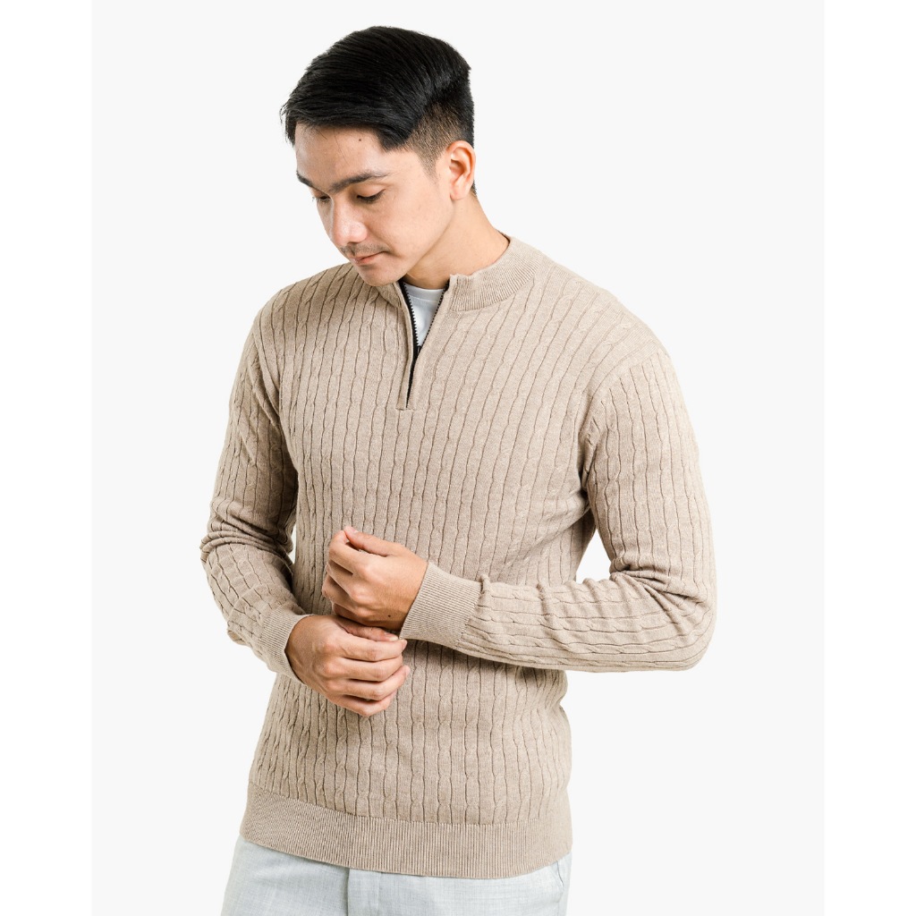 P&I SHOP Gomuda Sweater Rajut Pria Cable Quarter Zip Neck Knitwear - Choco