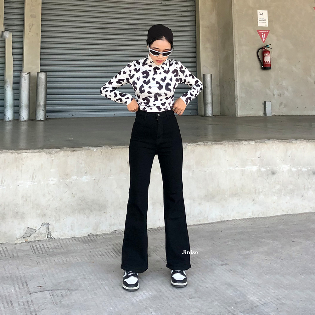 celana jeans wanita jiniso jumbo high waist cutbray kulot sobek cargo pants jumbo Loose 555 PSYCHO jiniso official store