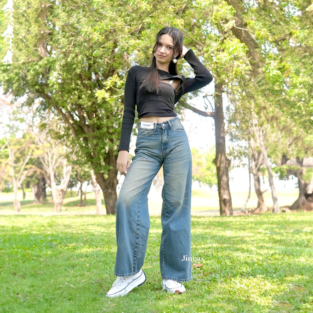 celana jeans wanita jiniso jumbo high waist cutbray kulot sobek cargo pants jumbo Loose WEEKEND jiniso official store