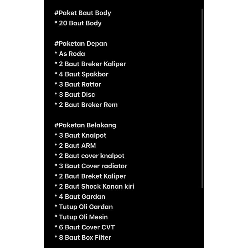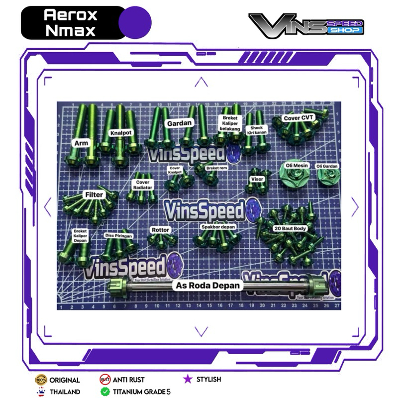 Paket Baut Titanium GR5 Aerox/NMAX Full Set | Baut Body, CVT, Knalpot, Shock, Stylish
