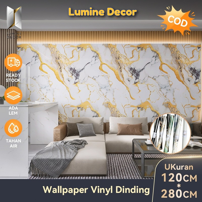 Lumine - Wallpaper Dinding Vinyl Marble Roll Ukuran Besar, Bahan PET Tebal 2.5mm Anti Air - Cocok Ruang Tamu Mewah Dekor
