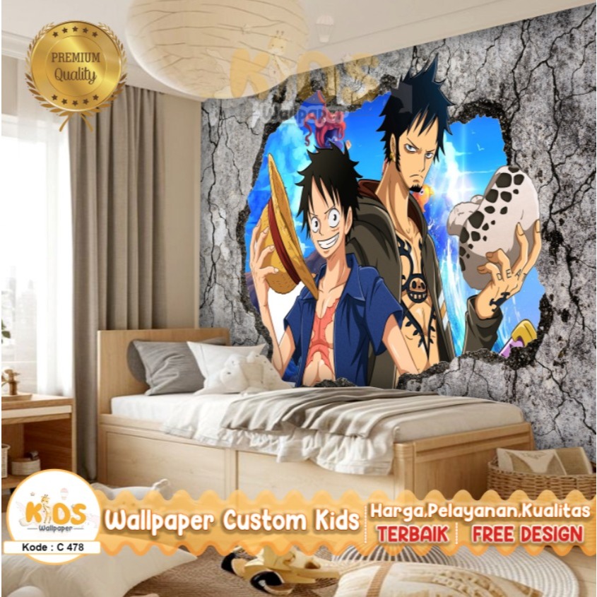 Wallpaper Dinding Custom 3D Tema One Piece | Kamar Anak Cowok | Animasi Anak | Animasi Hewan | Wallpaper Request Gambar