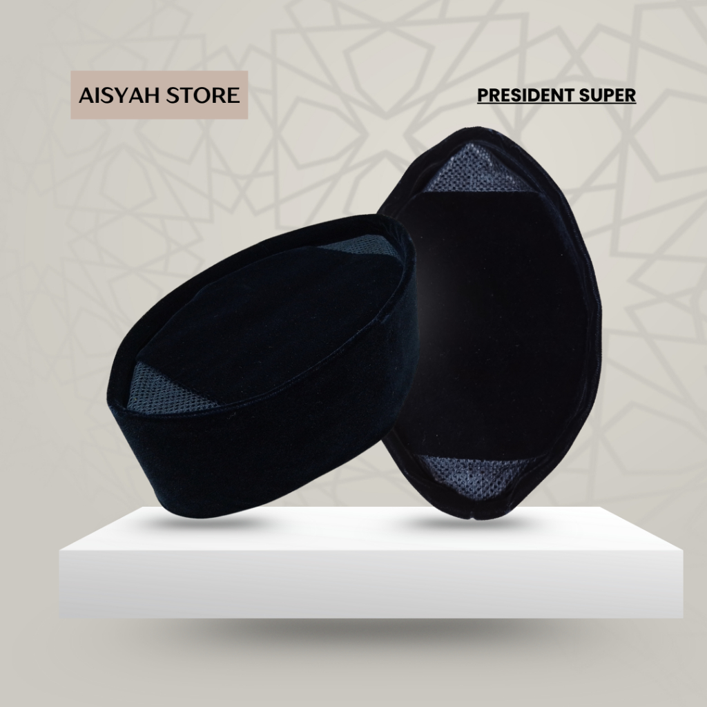 Songkok Hitam President Super AC dan Non AC Peci Pria Dewasa Kopiah Nasional Bludru Premium - Aisyah