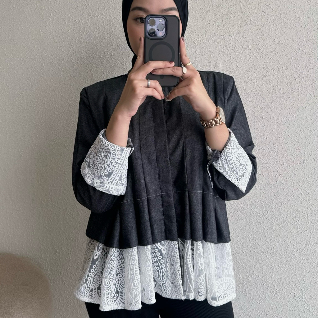 Floral Id - Blouse Mix Brukat Donita Atasan Wanita Kekinian Casual Basic