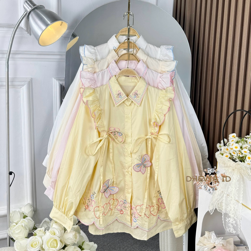 DHIVAA BLOUSE RUFFLE POPLINE MOTIF BORDIR TERBARU BY DHEVIA ID/BLOUSE WANITA TERBARU BORDIR MOTIF KUPU BY DHEVIA ID