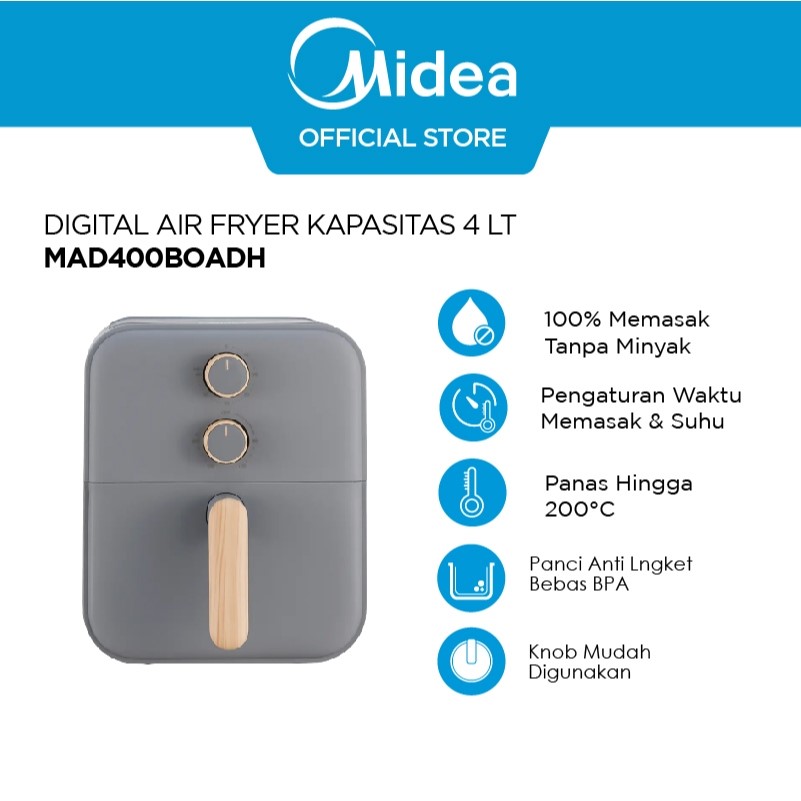 Best Seller Midea Air Fryer 4L 650W Penggorengan/Penghangat Makanan Tanpa Minyak Low Watt Philips Han River Samono