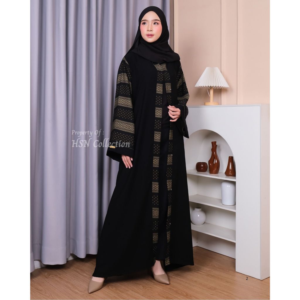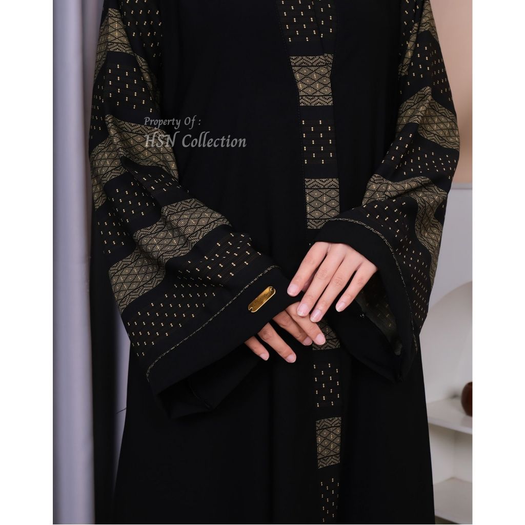 Abaya Marwah Outer Gamis Arab Hitam Wanita Bahan Jetblack Premium Outer Busui Mewah Kekinian