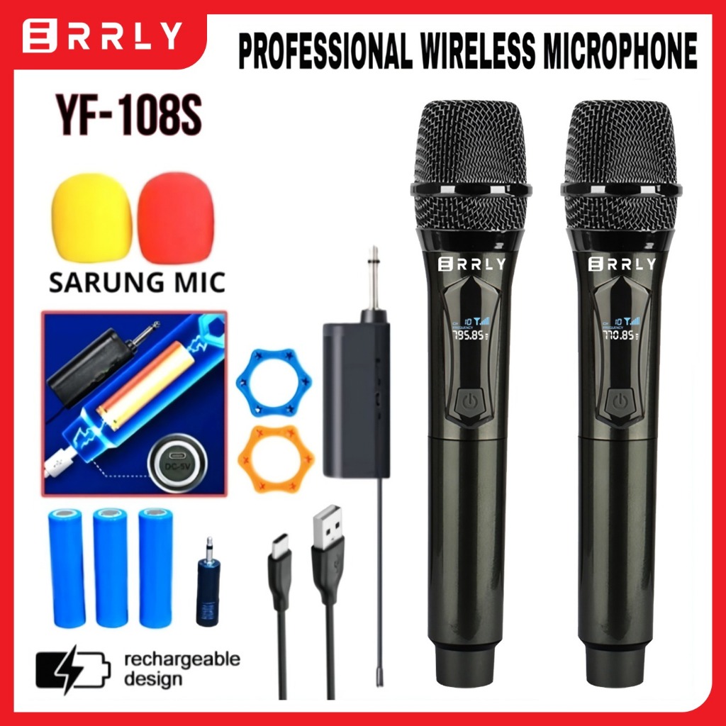 Mic Karaoke Wireless DUAL Microphone Karaoke ERRLY YF108 YF108S With Receiver System Mic Karaoke Genggam Recahrge / Bisa