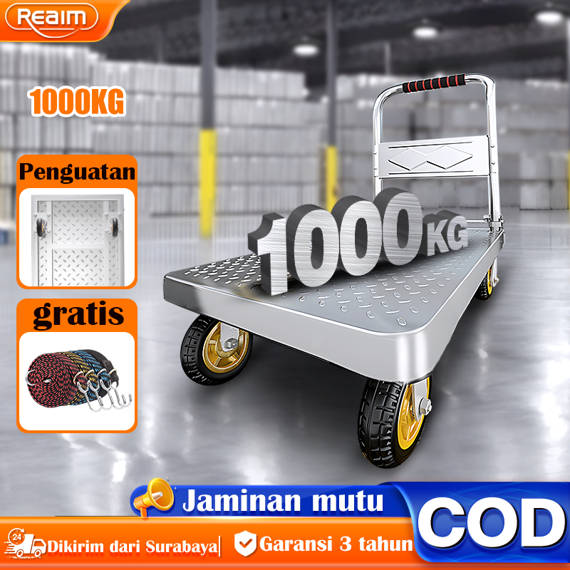 Reaim Troli Barang Lipat Handtruck Besi 1000KG - Portable Super Kuat 90x53cm 1 Detik Lipat