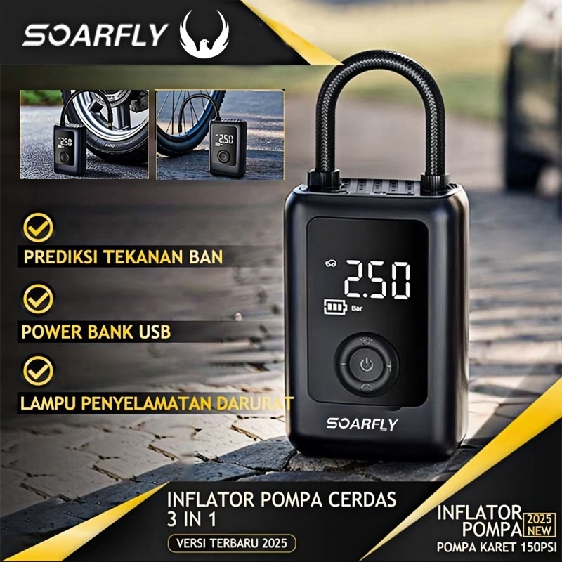 SOARFLY Pompa Ban Mobil Elektrik Portable Mini Multifungsi 12000mAh - Car Air Pump Tire Inflator Portable Pompa Ban Mobi
