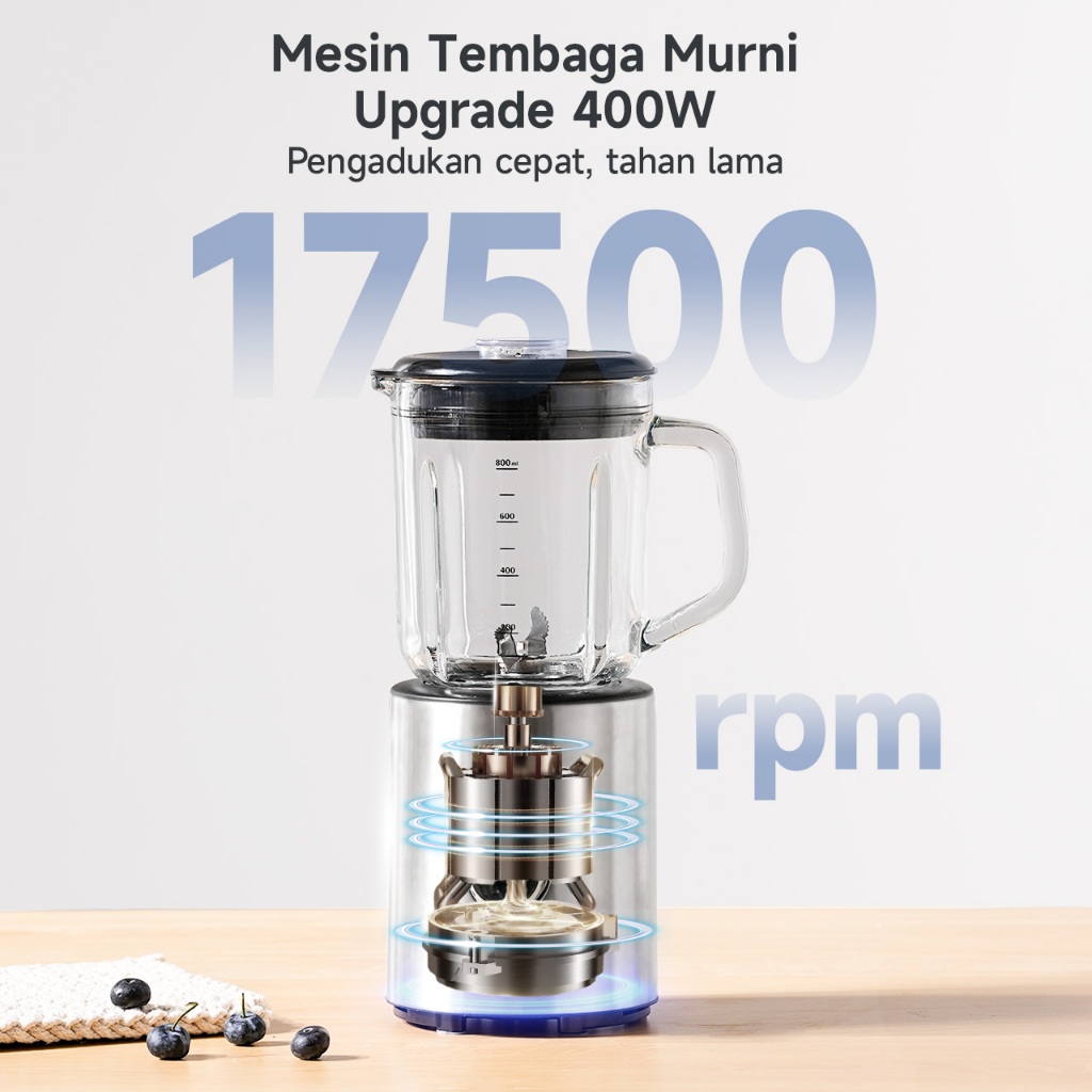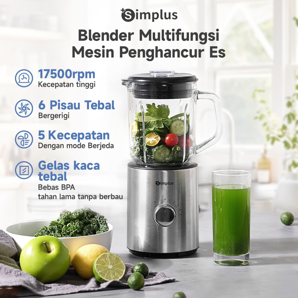 Simplus Blender 400W Makanan 5 mode pengaturan multifungsi, 6 bilah pisau stainless steel 304