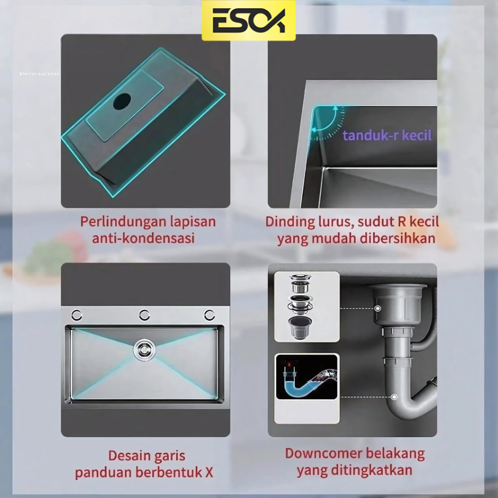 ESOK Sink Wastafel Stainless Steel Kitchen Sink Simple Murah