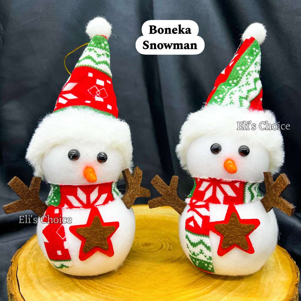Boneka Snowman Topi Santa Claus / Boneka Salju Lucu / Pajangan Meja / Hiasan Pohon Natal