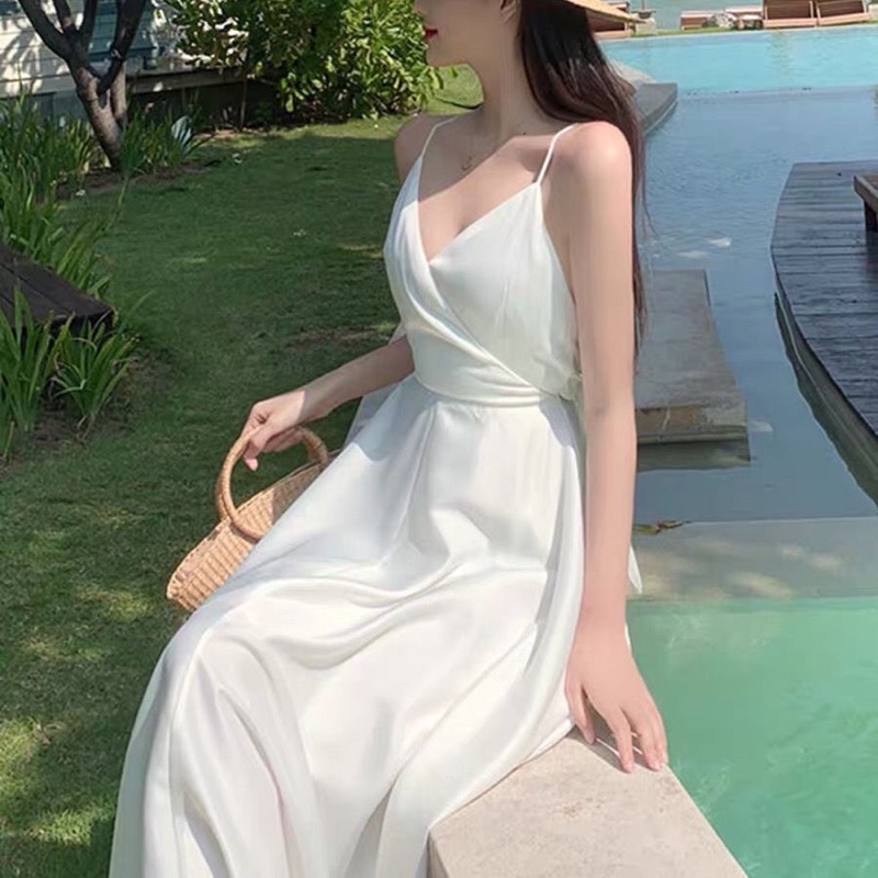 Dress Korea D23/22 White Backless dress A line / Dress pantai / y dress / korean vintage dress / midi dress - snj29