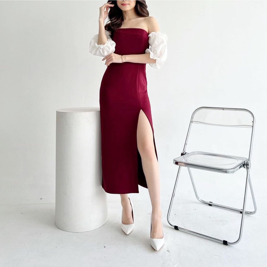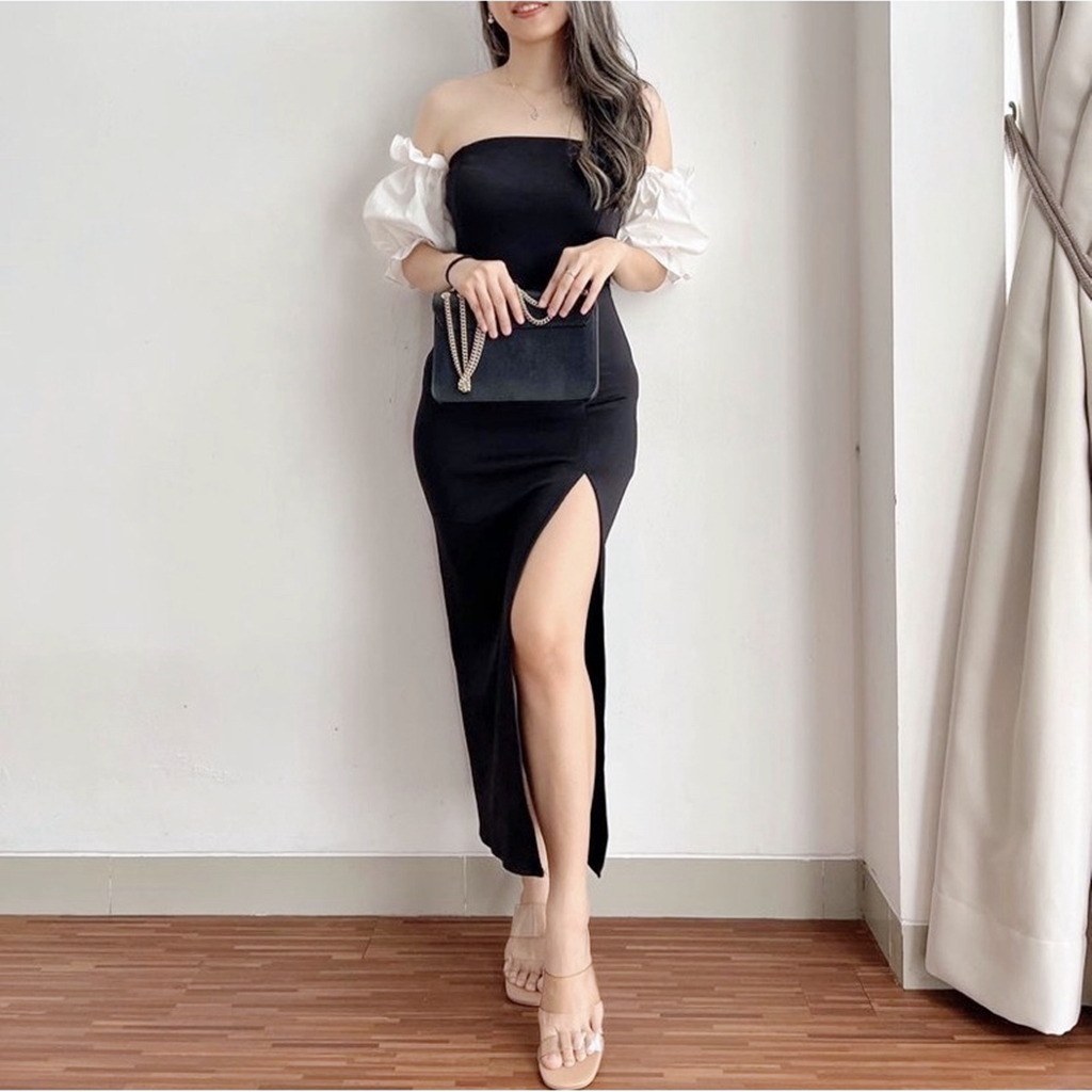 Dress Korea Sabrina Long Dress Slit Pesta korean Bodycone