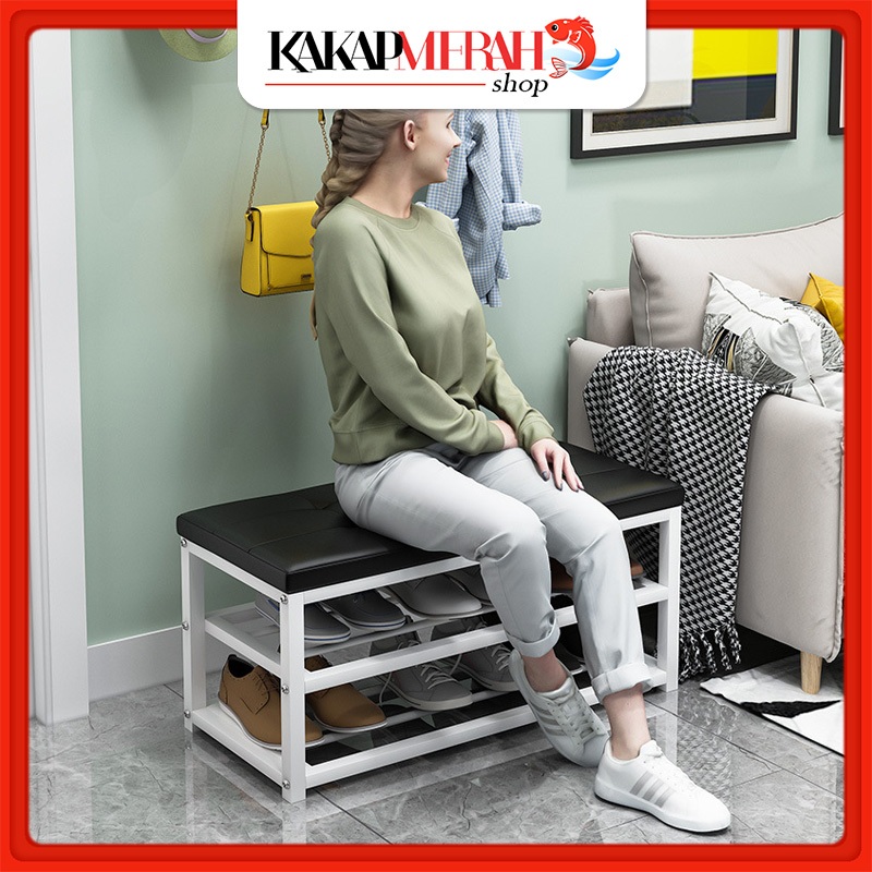 Rak Sepatu Kursi Sofa Besi Tempat Duduk Pakai Sandal Bangku Sepatu 2 Susun Kuat Kokoh