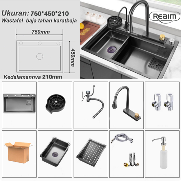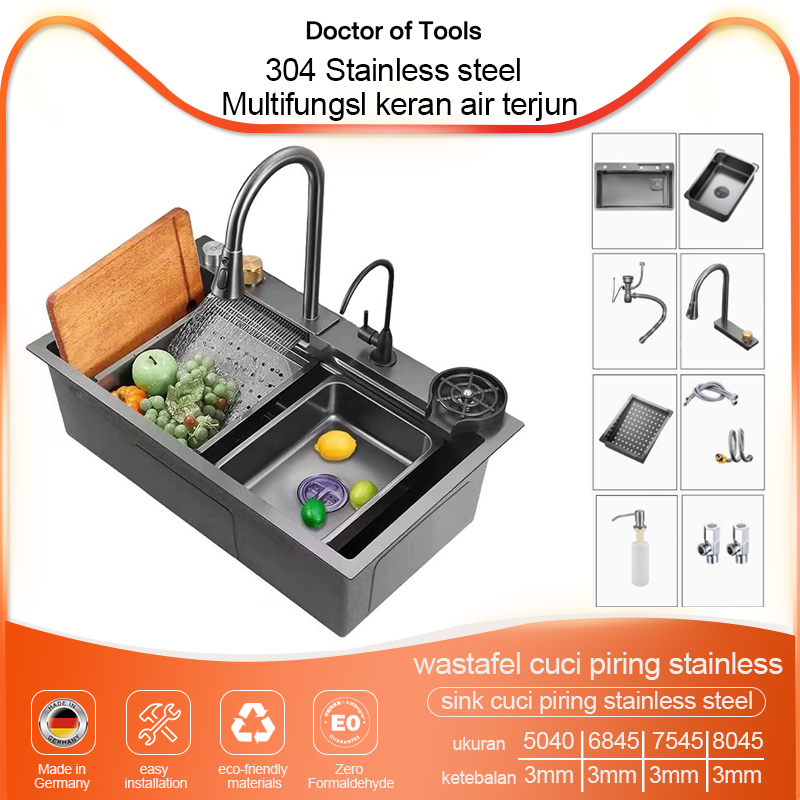 Wastafel Cuci Piring Stainless 3MM Stainless Steel Kitchen sink Modern Kitchen Sink Bak Cuci Piring Stainless Hitam cuci