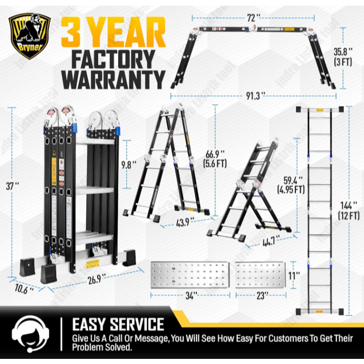 Reaim Tangga Lipat 3.8M 4.8M 5.8M Meter Tangga Rumah Lipat Paduan Aluminium Teleskopik TanggaTeleskopik Multifungsi Tang