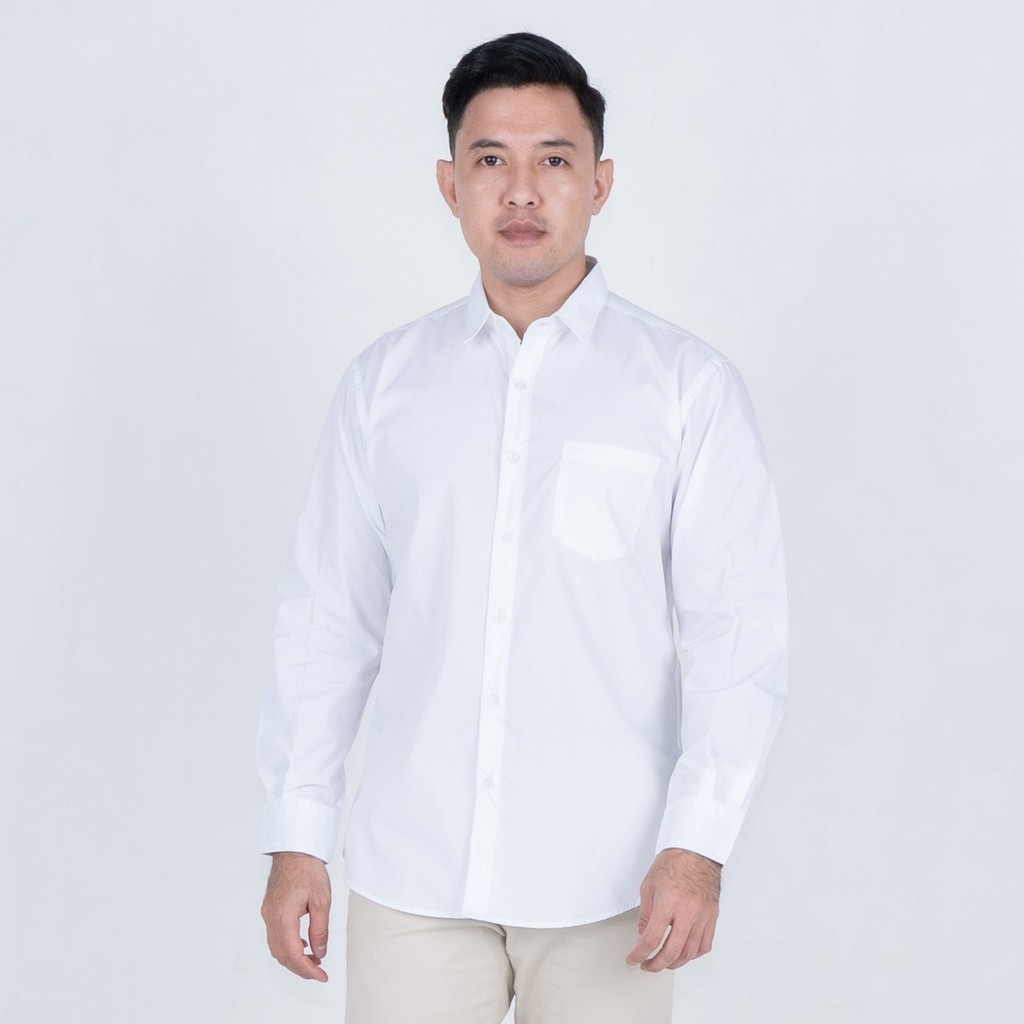 P&I STORE BENHILL Kemeja Basic Formal Pria Panjang Katun Poplin White 09-14-12133