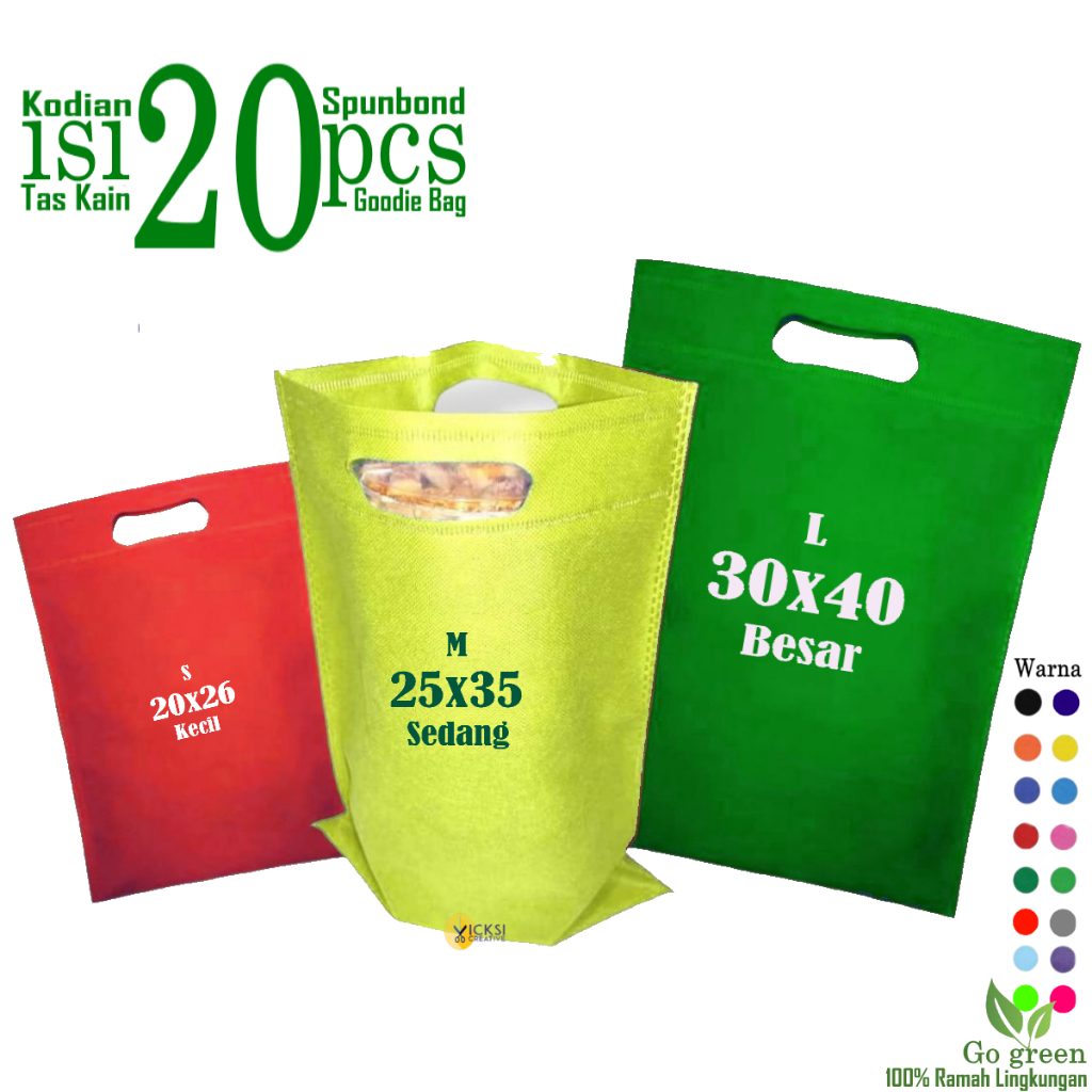 1 Kodian / 20pcs Tas kain Spunbond Goodie bag Oval Ukuran S,M,L ( Kecil 20x26 , Sedang 25x35 , Besar 30x40 ) Buat kanton