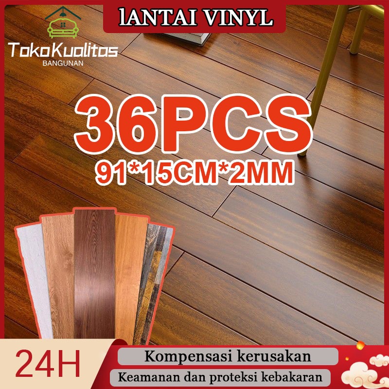 1 BOX [36 PCS] Lantai Vinyl Stiker Perekat Vinyil Lantai Kayu PVC Ubin Lantai Premium 91.4cmX15.2cmX1.5mm Decorasi Lanta