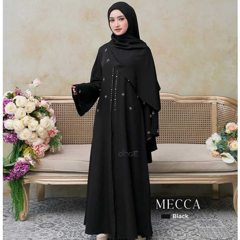 Mecca Dress Abaya Wanita Muslim Elegan Abaya Hitam Turkey Ceruty Full Furing Payet Mutiara Mewah