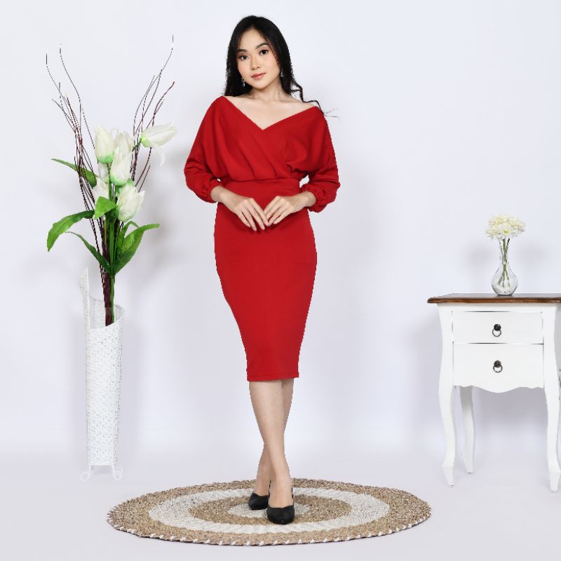 Dress Korea Midi Dress Pesta Bodycone Korean Style