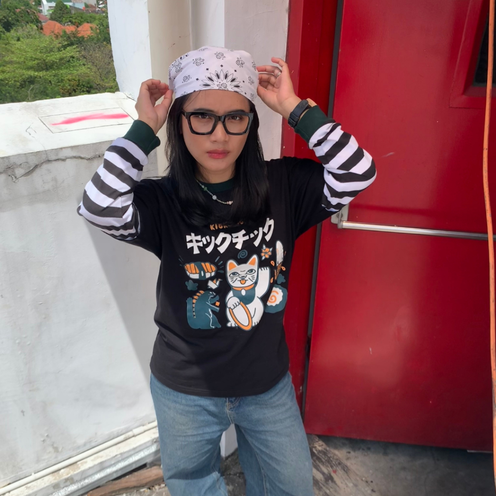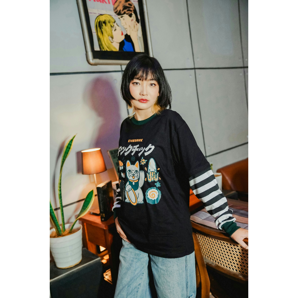 P&I STORE Kickchick Doublesleeve Stripe Kosei Black Army| Kaos Atasan | Lengan Panjang Unisex KCSAP135
