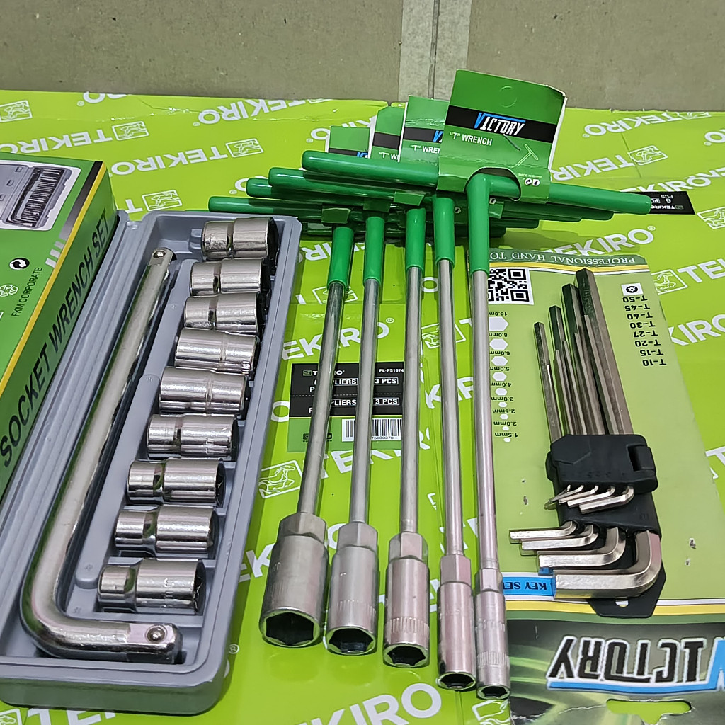 Paket Lengkap Murah / Alat Kunci Motor / Alat Bengkel / Kunci Pas / Sok Shock / Tools Set hijau tekiro