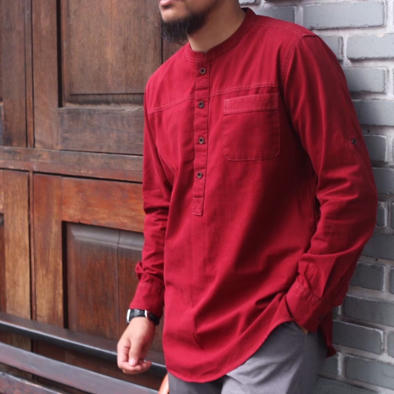 HMD_OFFICIAL Baju Koko Pria Dewasa Lengan Panjang Terbaru bahan katun baby canvas