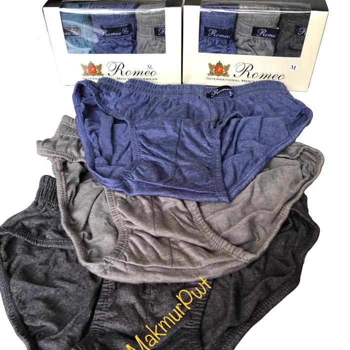 GRATIS ONGKIR ! CELANA DALAM ROMEO PRIA DEWASA ISI3 UKURAN M/L/ XL/ XXL KARET KATUN NYAMAN - M