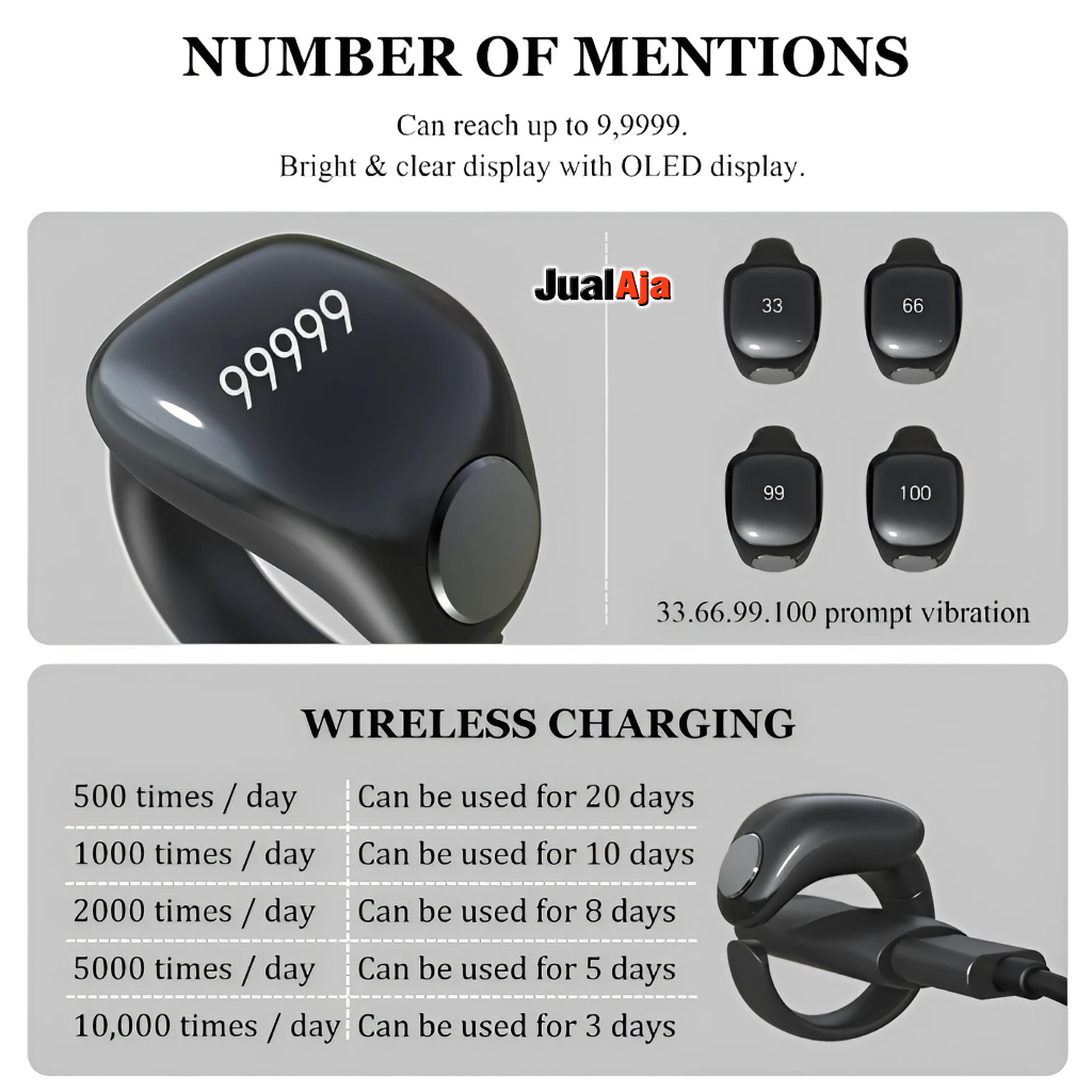 Cincin Tasbih Digital Weslamic iTasbih Anti Air Zikr Smart Ring 5 Ukuran