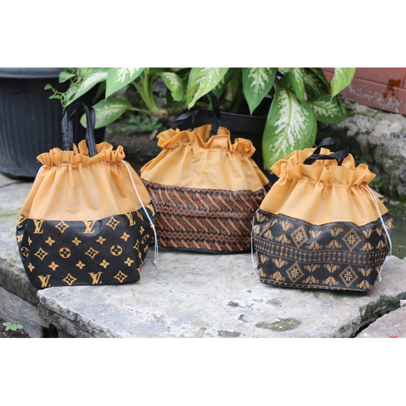 (12 PCS ) Tas Hajatan Serut Motif Batik Nusantara - Tas Serut Motif Batik Elegan Murah Gratis Ongkir Garansi Pengiriman