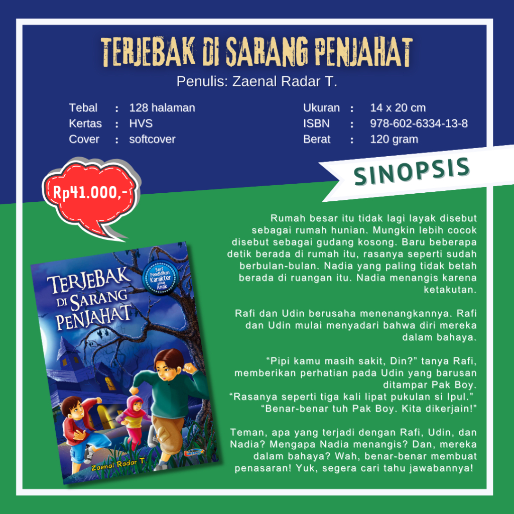 TERJEBAK DI SARANG PENJAHAT, NOVEL ANAK DARI ZAENAL RADAR T.