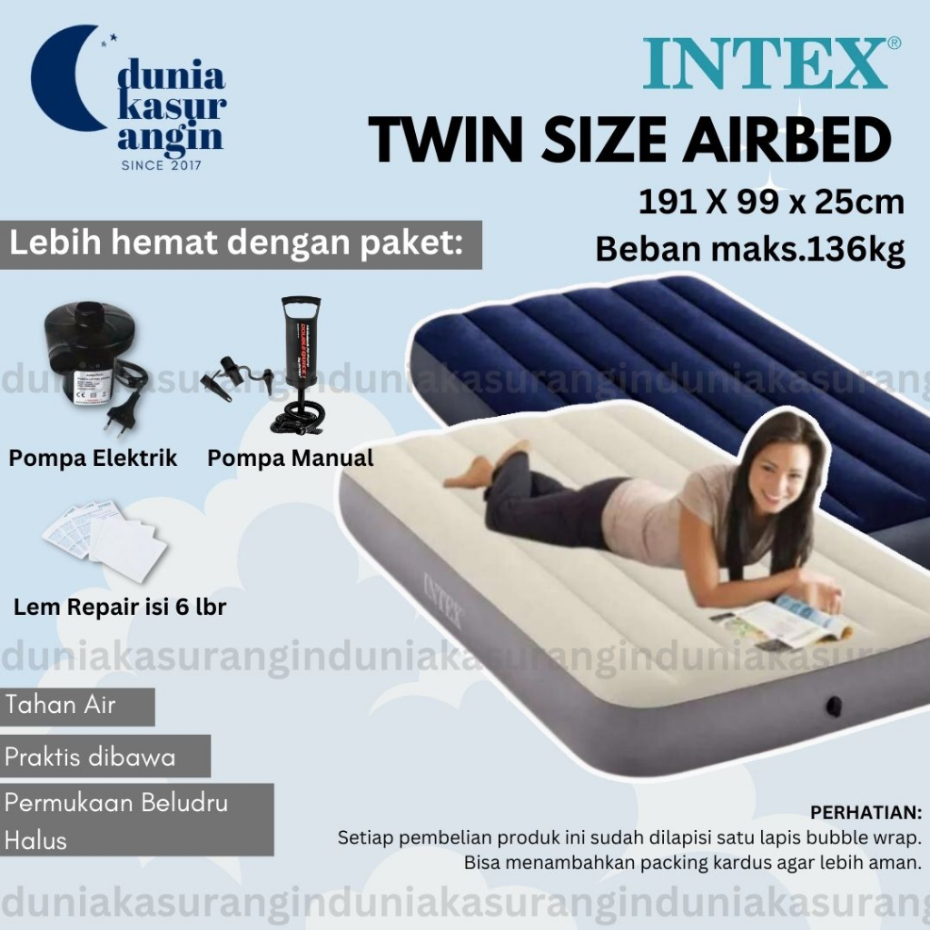 KASUR ANGIN INTEX TWIN SIZE DURABEAM 64101 / 64757 Kasur Camping [191cm X 99cm X 25cm]