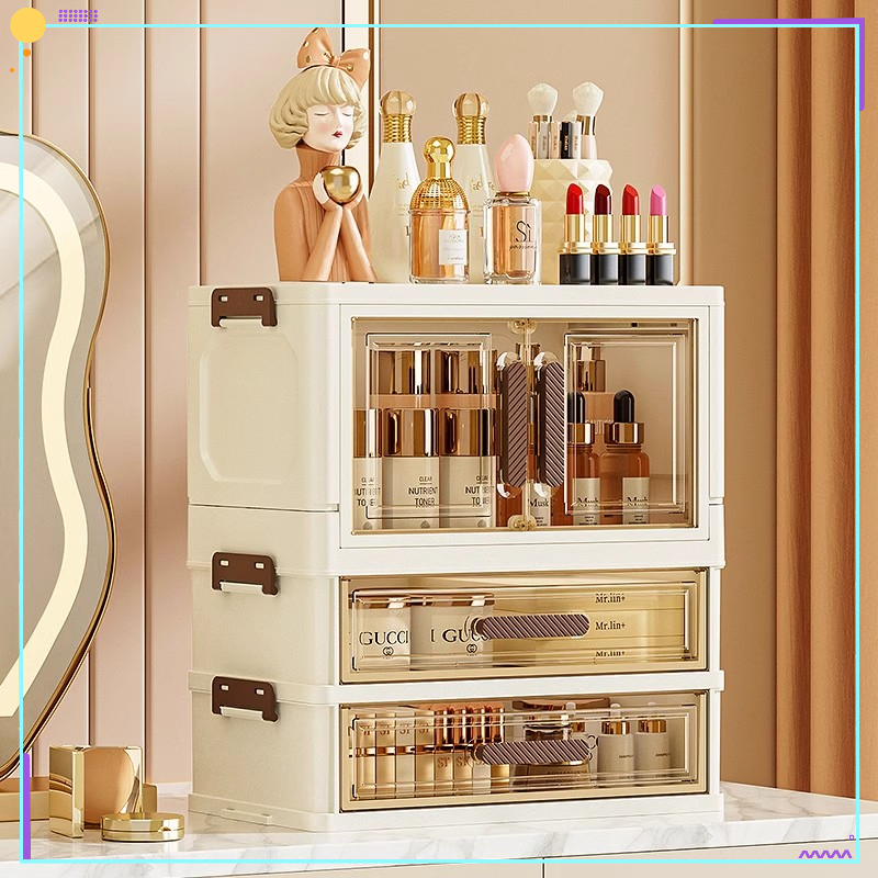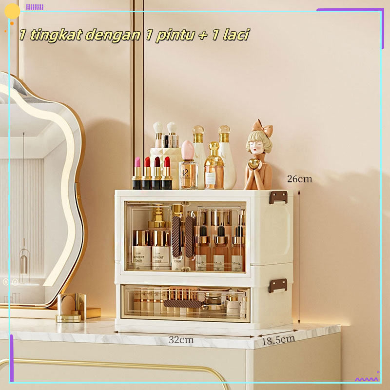 Rak Makeup Rak Kosmetik Aesthetic - Kotak Penyimpanan Kosmetik Desktop Tahan Debu Dengan Laci, Meja Rias, Lemari, Rak Pe